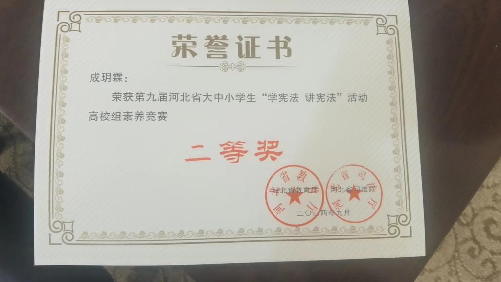 在刚刚结束的由省教育厅,省司法厅举办的第九届全国学生“学宪法、讲宪法”河北区总决赛中,我院共派出两支队伍分别参加了宪法素养大赛和宪法演讲大赛。