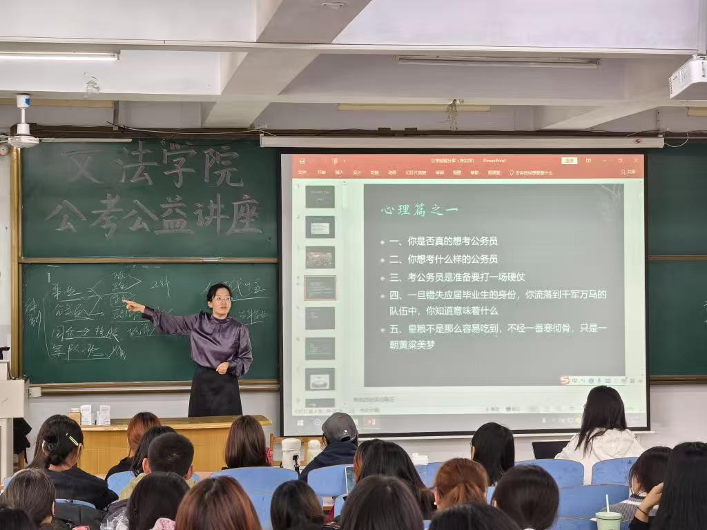 随着经济形势的不断变化和社会竞争的加剧,年轻人的就业形势日益严峻,为帮助我院学生更加清晰地了解公考现状,增加同学们对公考的热情与信心,必赢国际437官网特于2024年10月12日举办公考公益讲座。