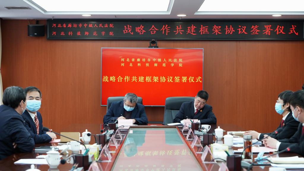 为深入践行习近平法治思想,健全法治人才培养机制,增进高等院校与人民法院的交流合作,创新法学理论和司法实践成果转化。2月7日,必赢官网蒋爱林副校长、教务处马爱林处长及必赢国际437官网党委书记郝东、院长赵福江、副院长王强等人赴廊坊市与廊坊中院举行战略合作共建协议签署仪式。