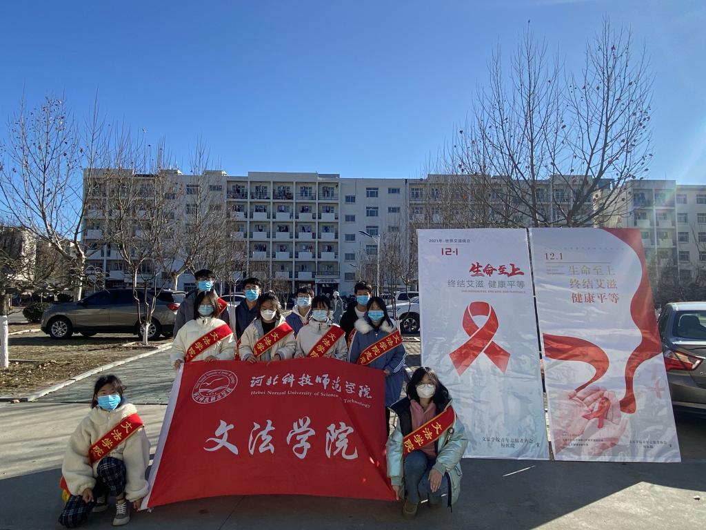 2021年12月1日,必赢国际437官网青年志愿者协会协同校医院组织了以“生命至上,终结艾滋,健康平等”为主题的志愿服务活动。