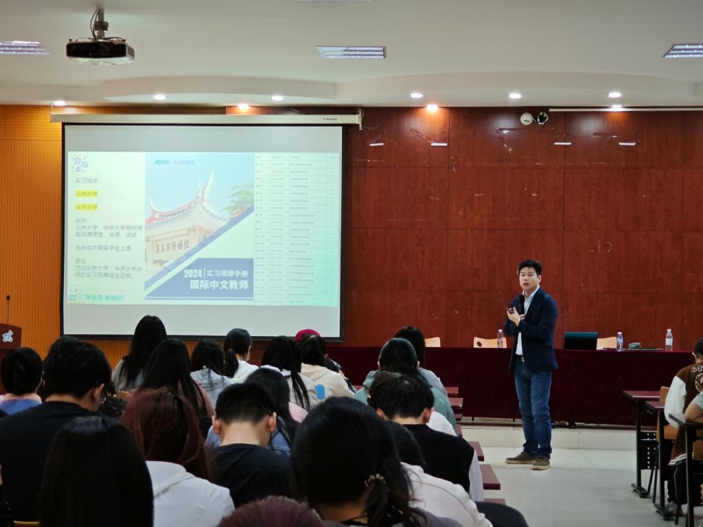 为促进毕业生高质量就业、拓宽就业渠道,4月24日下午文学与新闻传播学院、外国语学院与教师教育学院在博文楼328报告厅以及通过腾讯线上会议,联合举办新东方比邻中文专场招聘宣讲会,三院2024届、2025届相关专业毕业生百余人参加了会议。