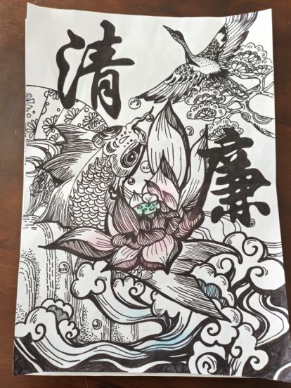 本次活动是同学们把对廉洁文化的思考融入到作品的设计中,创作出了一件件廉洁主题鲜明、艺术气息浓厚的作品。本次活动分为线上提交和线下展览两个部分。线上提交作品同学们可以选择自己感兴趣的题材自由发挥。同学们积极参与,呈现了许多优秀的作品。线下展览现场,参赛同学分别对自己的作品提出了独特的见解,一幅幅形式多样、寓意深刻、设计新颖的佳作,充分挖掘中华优秀传统文化的廉洁元素,介绍廉洁典范人物,或展示廉政名言警句,或以“莲”借物寓意,多角度诠释了廉洁文化的深刻内涵。本次作品展评选了一、二、三等奖,师生携手圆满完成此次评展活动。