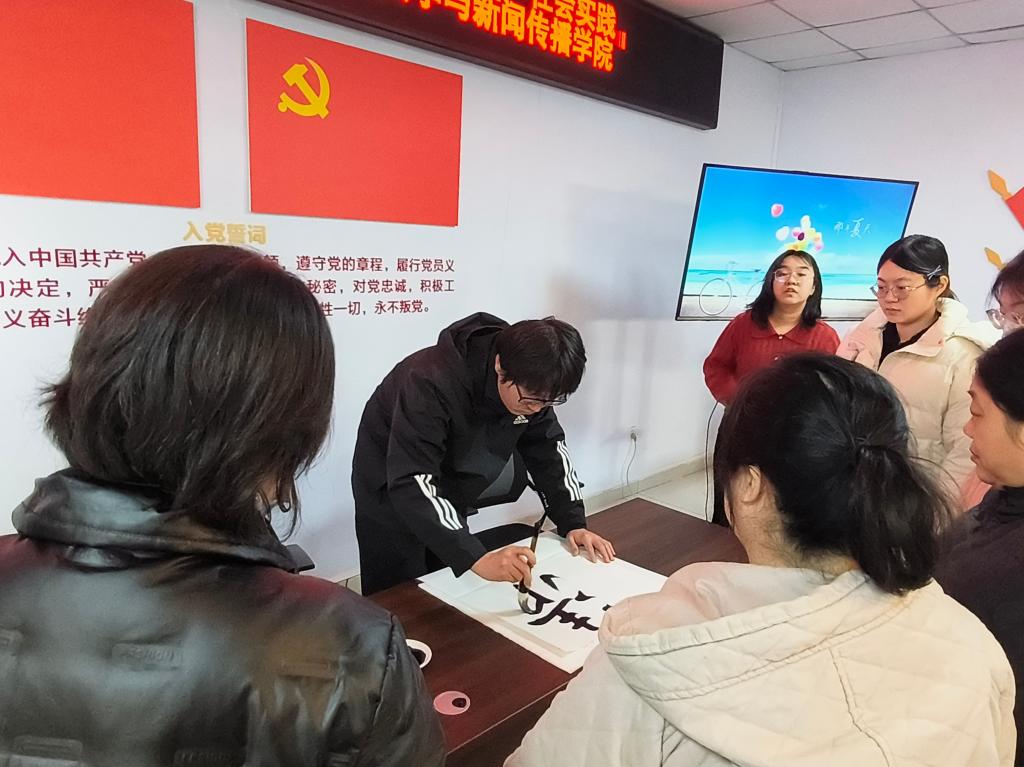 为加强社区清廉文化建设,提升反腐倡廉教育的鲜活性、感染力,2024年2月27日,文学与新闻传播学院走进明湖社区开展“书法展清廉,妙笔颂清风”主题社会实践活动。