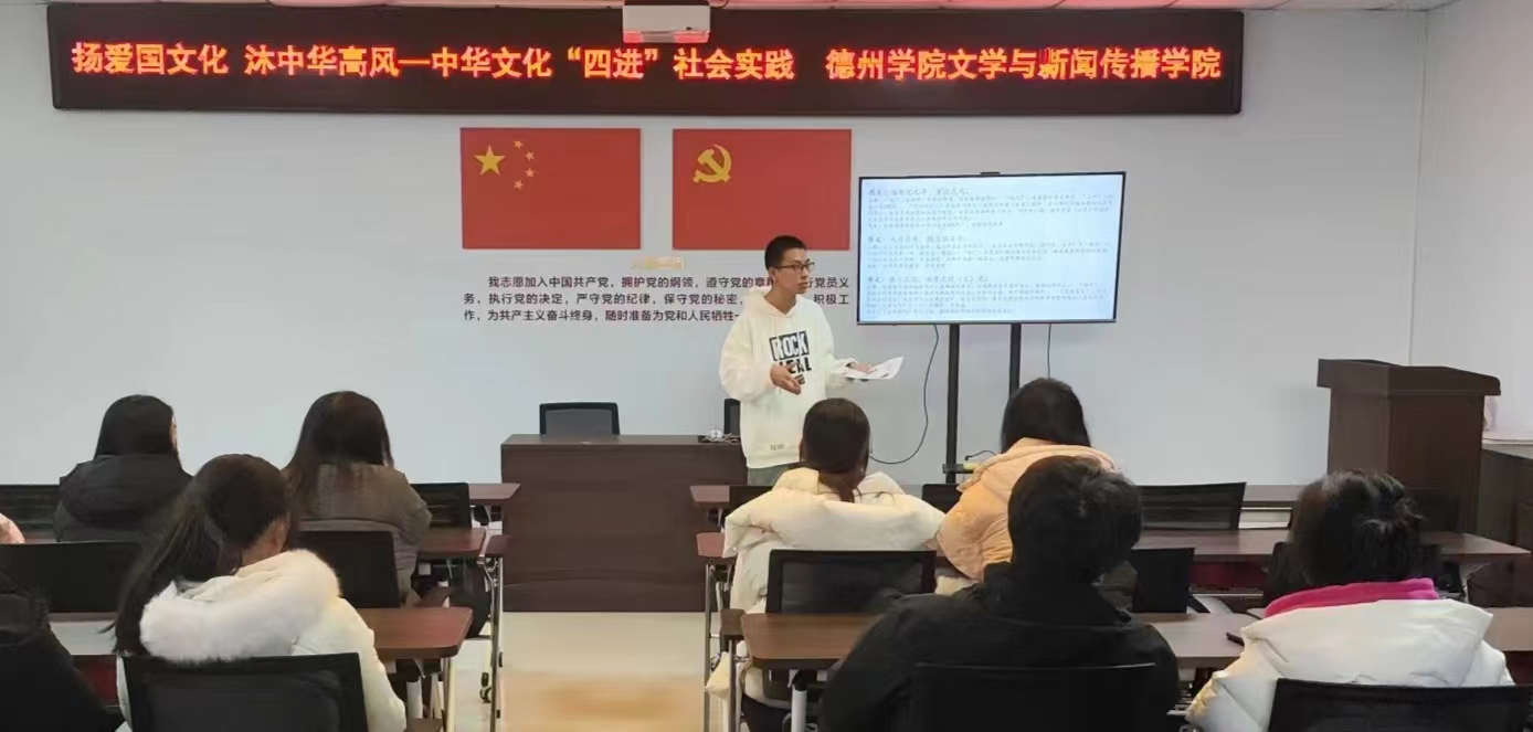 为了传承中华优秀传统文化,培养同学们的爱国情怀,促进学生全面发展,2024年2月28日,beat365在线唯一官网文学与新闻传播学院走进德州市德城区新湖街道明湖社区开展了“扬爱国文化,沐中华高风”主题志愿宣讲活动。