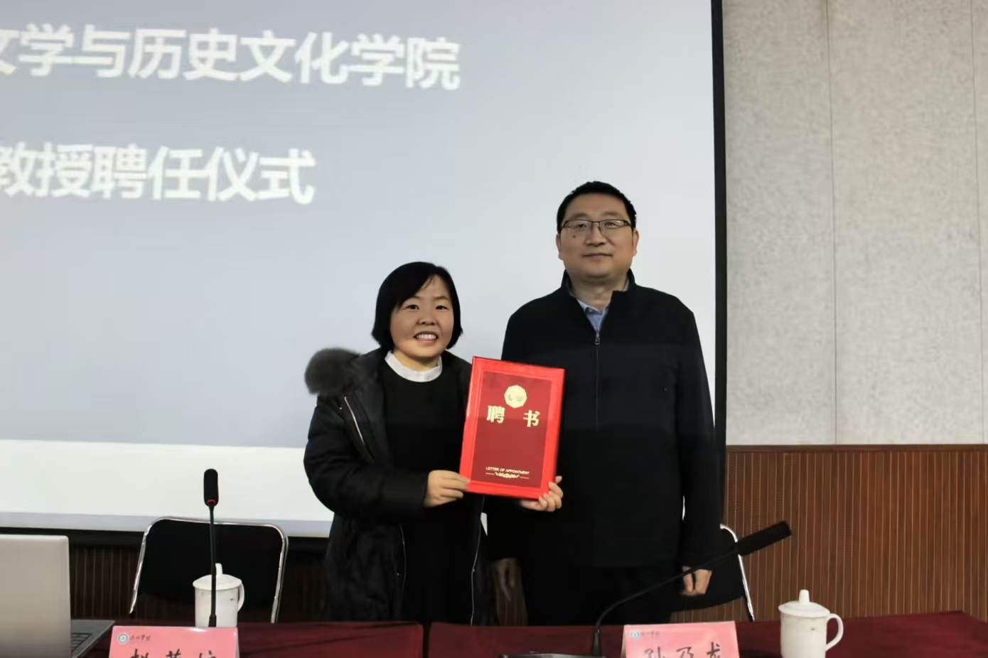 2026年1月5日下午,山东社会科学院研究员、泰山学者青年专家、博士生导师赵燕姣应beat365官网邀请,受聘为beat365在线唯一官网兼职教授。聘任仪式于博文楼528报告厅隆重举行,beat365在线唯一官网社会科学处处长、马克思主义学院院长孙乃龙为赵燕姣研究员颁发兼职教授聘书,beat365在线唯一官网党委书记仲冲主持仪式,历史学等相关专业师生代表参加。