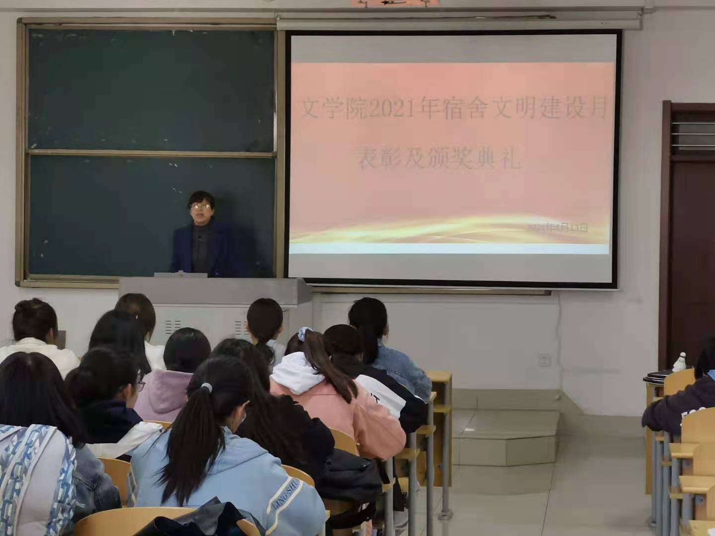 为进一步加强党史学习教育,营造学党史、学榜样的良好氛围,做好疫情防控期间学生宿舍卫生健康工作,培养学生良好的生活卫生习惯,营造干净整洁、健康文明的宿舍环境,不断深化beat365官网文明校园建设,打造“思想引领、学业解惑、生活服务、行为指导、文化浸润”五位一体的温馨家园,4月13日下午,文学院在博文楼431教室成功举办2021年“文明宿舍建设月”活动表彰及颁奖典礼。