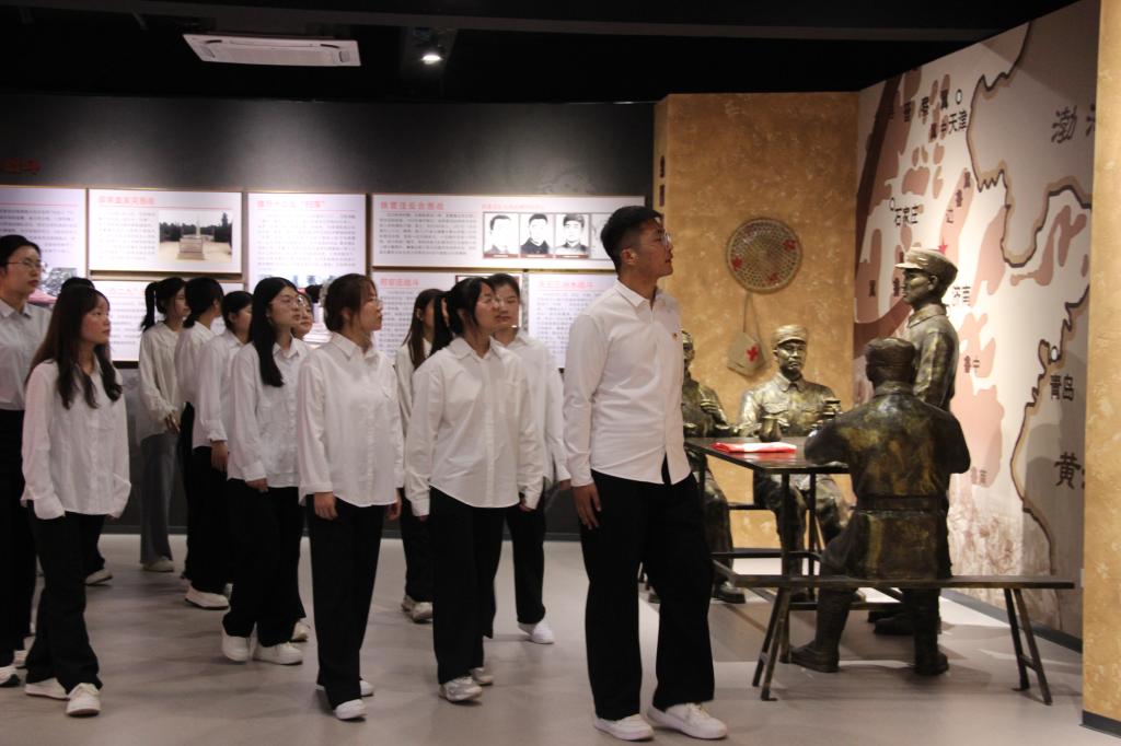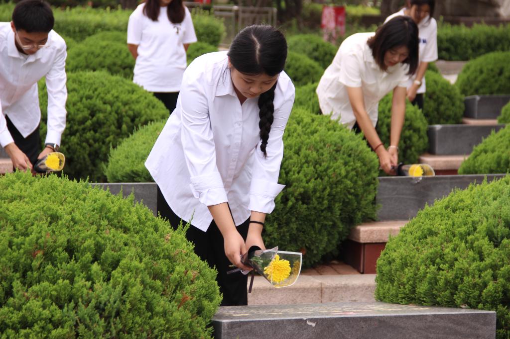 不忘先烈志,同铸中华魂。此次活动,beat365官网学生党员干部代表、入党积极分子以及24级新生共同前往烈士陵园开展纪念活动。活动开始,全体人员于纪念塔下向抗战英烈默哀,并依次敬献鲜花,气氛庄严肃穆、悼念默哀,寄托着对烈士的缅怀与哀思。学生们来到英烈碑前,拂去尘土,献上手中的鲜花,并深深鞠躬,以此表达对烈士们的无限敬仰和怀念。祭扫活动结束后,学生们参观了烈士纪念馆,通过观看历史图片、实物和文字资料,更加深入地了解了抗日战争时期德州地区的历史与烈士们的英勇事迹。他们纷纷表示,通过这次活动,他们更加深刻地感受到了和平的宝贵和幸福生活的来之不易,也更加坚定了为实现中华民族伟大复兴的中国梦而努力学习的决心。