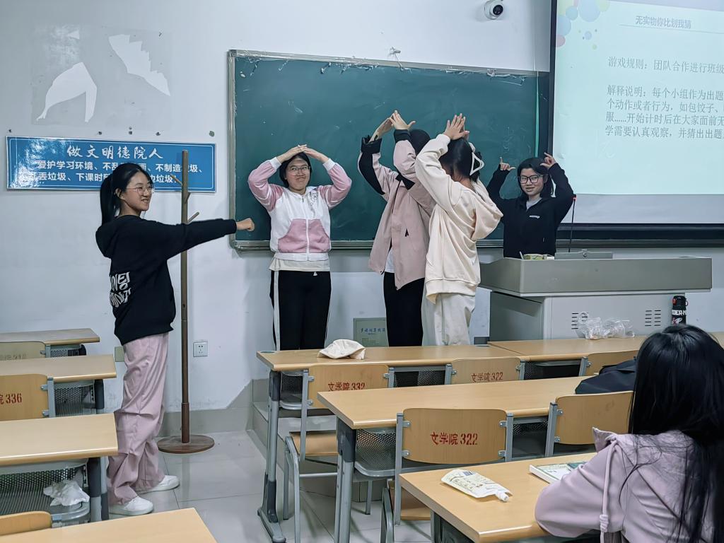 在这次活动中,同学们展现出了极高的热情和积极参与的态度。他们共同参与了三个设计巧妙且富有趣味性的小游戏,每个游戏都充满了挑战与乐趣。“数字炸弹”游戏紧张刺激,大家在猜测数字的过程中,既考验了思维的敏捷性,又增进了彼此之间的默契。“读颜色”则考验了大家的专注力和反应能力。而“你划我猜”将活动氛围推向了高潮,比划的同学手舞足蹈,猜词的同学绞尽脑汁,试图从比划者的提示中找到线索。现场欢声笑语不断,大家都沉浸在这个充满创意和欢乐的游戏中。