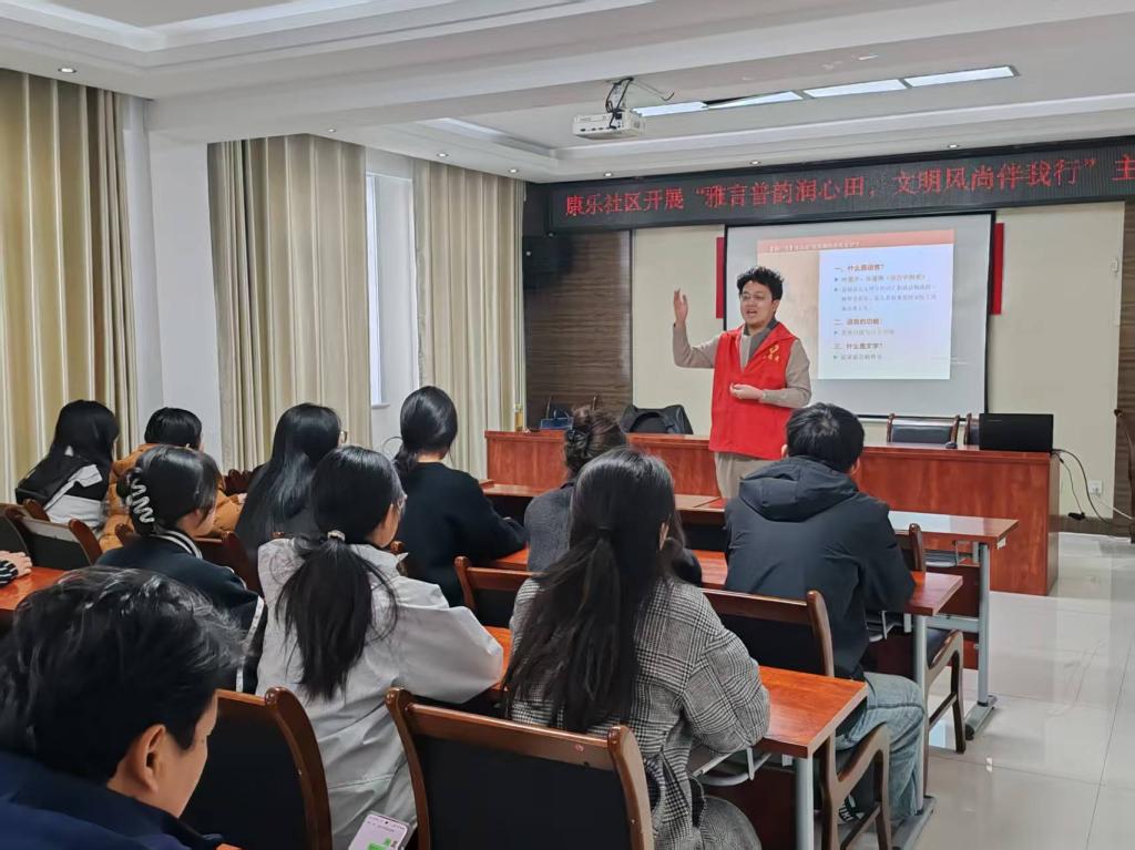 为进一步弘扬雷锋精神,推动普通话普及,提高社区居民的文化素质,3月18日,beat365在线唯一官网走进康乐社区,为社区居民带来了一场生动实用的语言文化课。