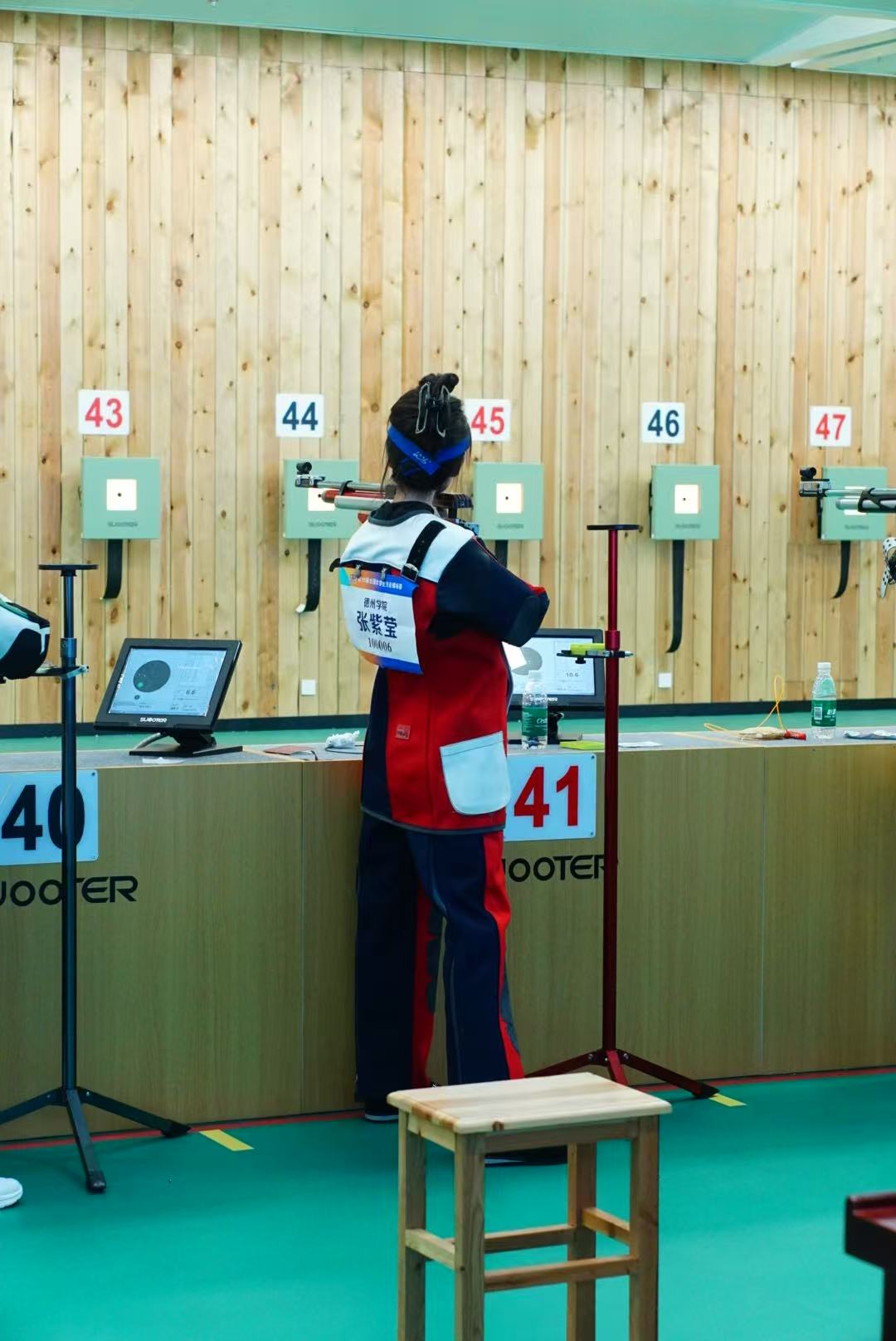 “这次比赛为我的大学生活增添了浓墨重彩的一笔。”张紫莹在回顾参赛经历时说道。谈及比赛经验,她表示:“牢记打好每一枪,不去勉强。”面对赛场压力,张紫莹通过及时调整呼吸、修正站姿来稳定心态。她特别提到“团队使命感”对自己的推动:“做好充分的准备工作,去打好每一枪,因为我不仅仅只有个人,我还有团队。” 同时,张紫莹对教练的指导和学校的支持表示感谢:“每周日的实弹训练和赛前集训,让我更懂得沉淀心态。”
