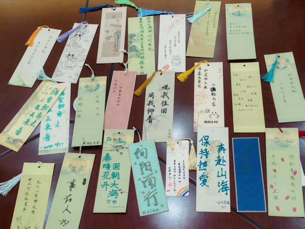 活动当天氛围轻松热烈。“气球传情,认识你我”环节中,同学们在气球上写下好奇的问题并传递;音乐停止时,拿到气球的同学回答问题并自我介绍,大家在互动中快速熟悉彼此。在“能量书签,绘就新篇”环节,大家用画笔在书签上创作励志话语或希望图案,再用流苏加以装饰,将对新学期的期待融入其中。创作完成后,同学们踊跃上台展示书签,分享灵感与“能量关键词”,心与心的距离在真诚交流中不断拉近。