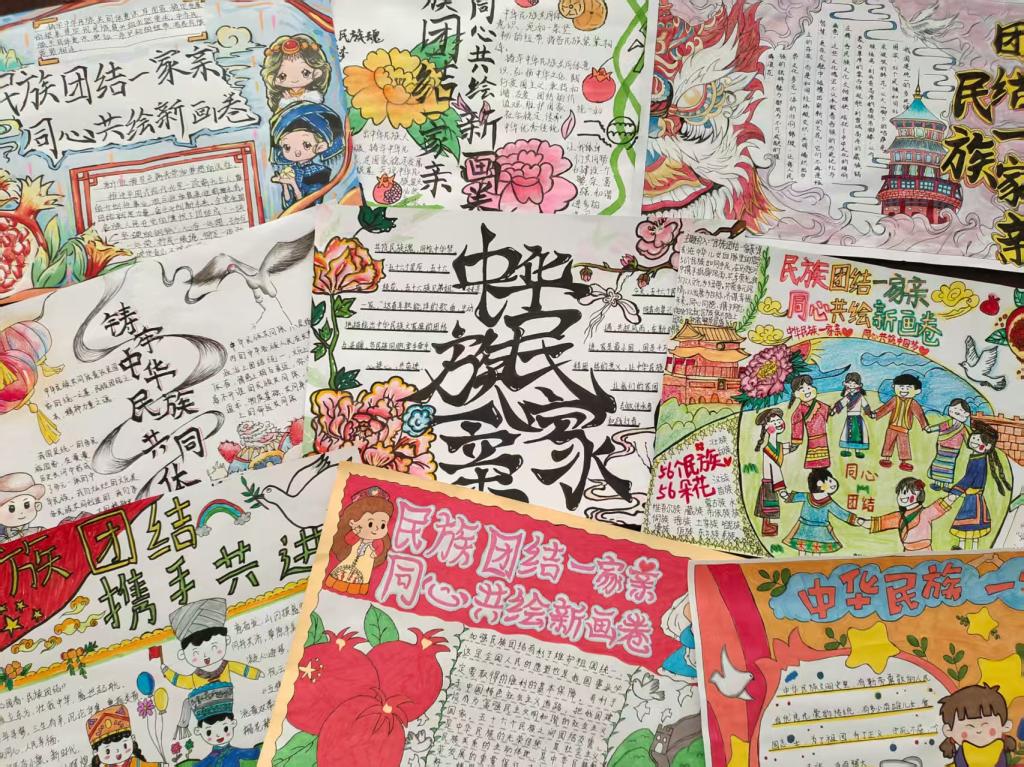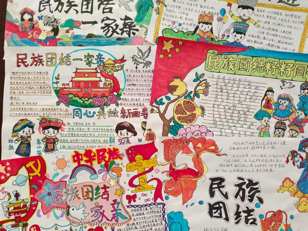 活动期间,同学们踊跃参与,围绕主题积极搜集资料、精心设计版面,通过图文并茂的形式展现各民族的历史文化与风俗习惯。参赛作品题材丰富、风格多样,既有对传统服饰、节庆习俗的细腻描绘,也有对民族团结故事的生动讲述。一幅幅生动的手抄报作品,不仅体现出同学们的创意与动手能力,也传递出对民族团结的理解和认同。