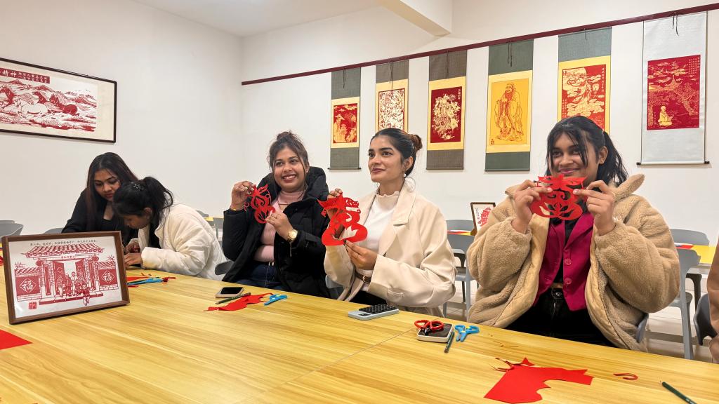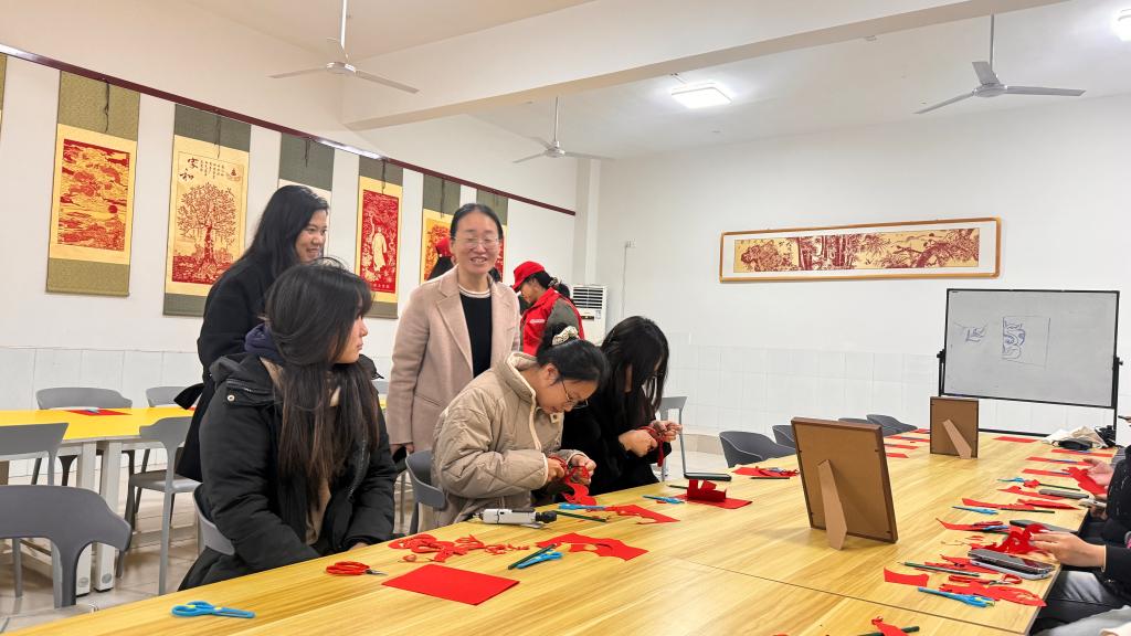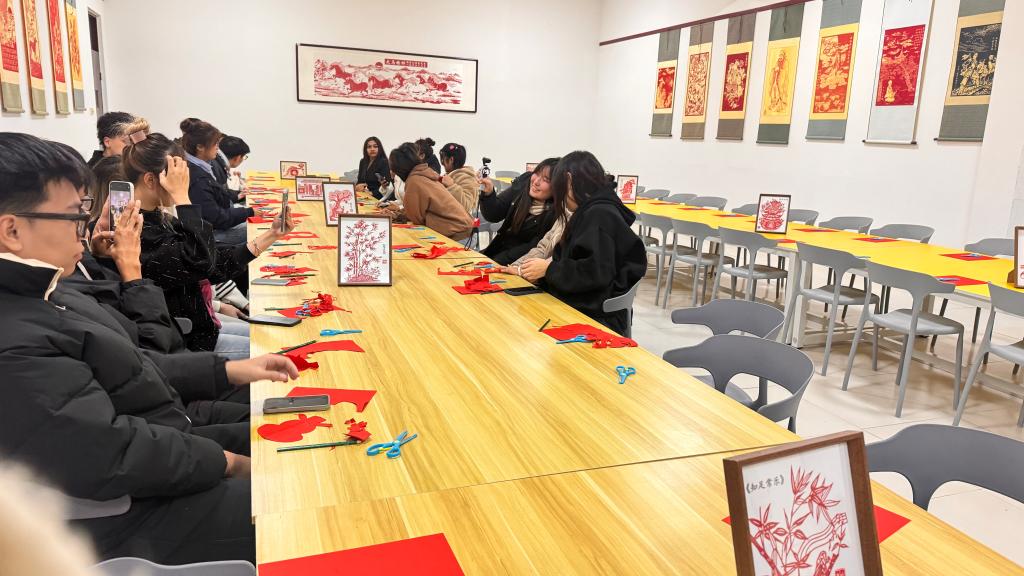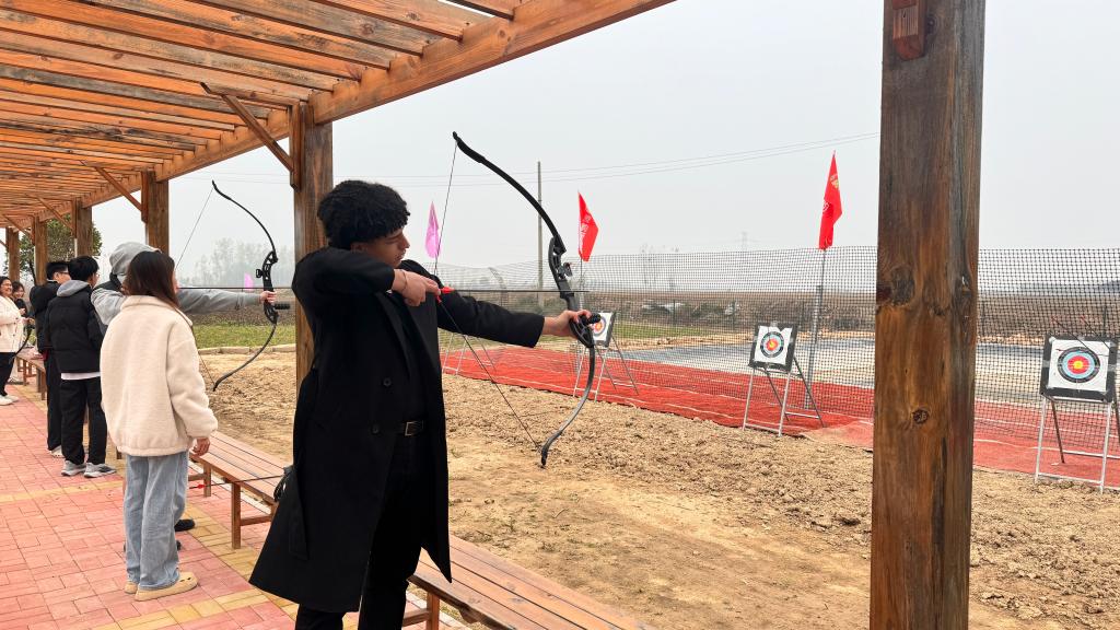 活动现场,研学基地的指导老师向留学生讲解各项技艺的历史渊源与文化内涵,随后分区域展开实践教学:书法体验区老师从握笔、运笔技巧切入示范汉字书写要领,展现汉字韵律;在剪纸体验区,老师既展示优秀经典作品,又分析折叠、裁剪技巧,指导留学生们完成各具特色的作品,体会传统技艺的细致;射箭体验区则从传统射箭的礼仪、站姿与发力方法开始,阐释“射以观德”的理念,让留学生们在从生疏到熟练的过程中感受到运动乐趣与文化魅力。