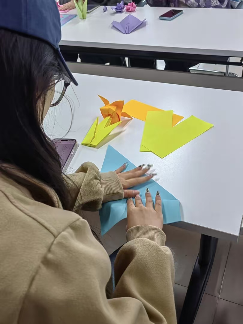 活动伊始,学生们挑选了自己心仪的彩色纸张,开启了充满创意与乐趣的折纸之旅。在折叠、翻转纸张的过程中,大家全神贯注,沉浸在指尖艺术的魅力中。遇到难题时,学生们相互交流、彼此协助,共同克服困难。随着一张张平凡的彩纸逐渐变成造型多样、精致美丽的“心灵之花”,现场气氛也愈发温馨融洽。此次活动不仅锻炼了学生们的动手能力,激发了他们的创造力,还通过团队协作增强了彼此间的信任与凝聚力。折纸作为一种从无到有的艺术形式,象征着成长与蜕变。学生们在完成作品的过程中,不仅收获了内心的平静与满足,也深刻体会到了专注与坚持的意义。活动结束后,学生们纷纷展示自己的作品,并分享创作心得。现场洋溢着欢声笑语,大家通过艺术创作表达情感、传递温暖。