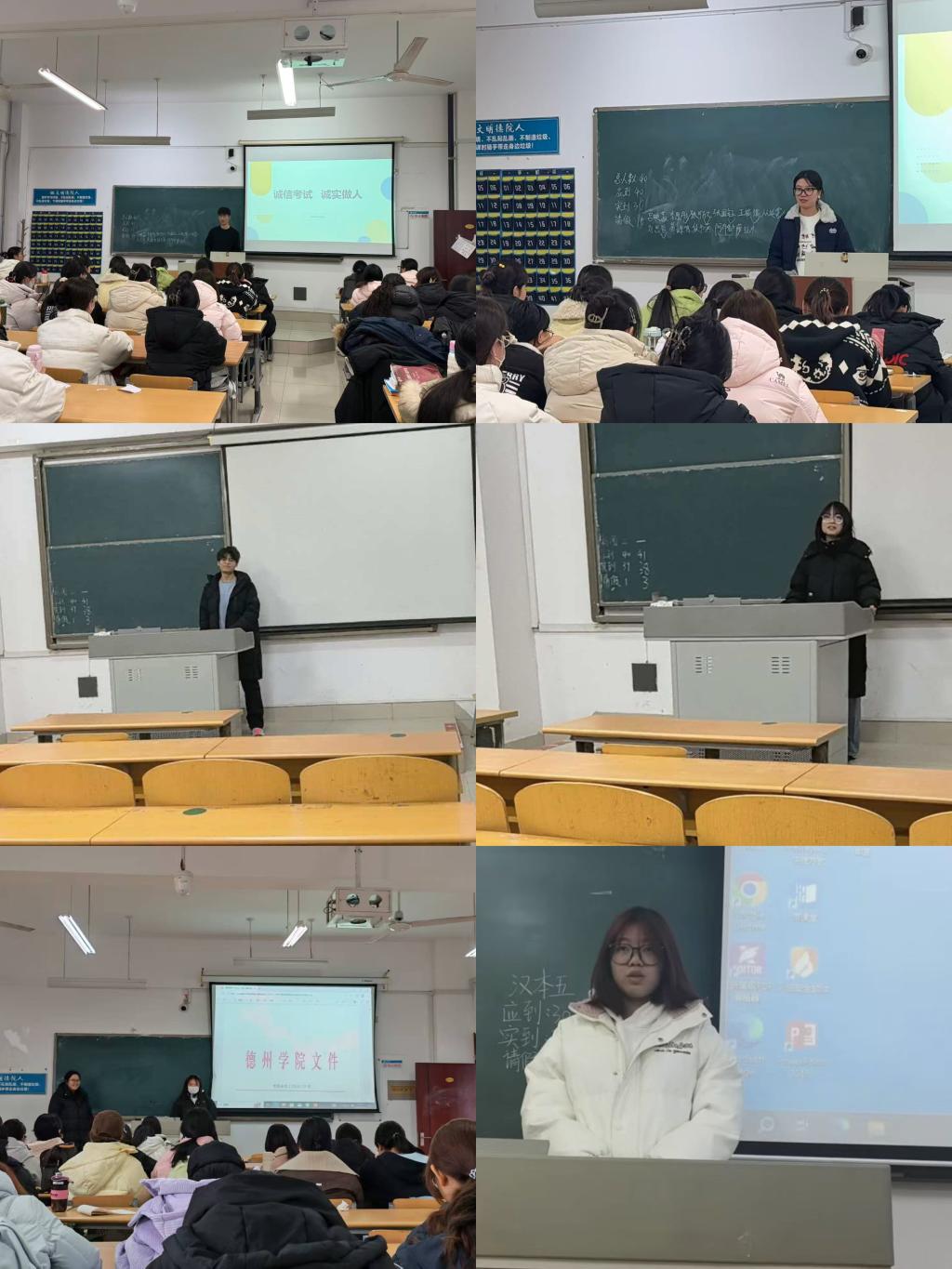 各班级召开“诚信立身・诚信立学”主题班会,深入学习《beat365在线唯一官网学生违纪处分条例》。各班代表结合自身感悟分享心声,师生共同参与文件解读、现实案例剖析环节,在互动交流中持续强化全体学生的规则意识。同学们郑重签署《诚信考试承诺书》,各班推荐代表针对诚信考试进行表态,以庄重的仪式感固化诚信承诺,让“守信应考”的理念入脑入心。通过微信公众号、班级群等渠道同步推送警示清单与纪律要求,增强学生对考试纪律的敬畏意识。