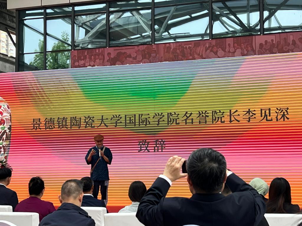 活动在充满地域特色的文艺演出中拉开帷幕。德城区领导在致辞中强调,德州窑红绿彩作为黄河与运河文化交融的瑰宝,承载着深厚的历史底蕴,此次国际研学院的成立将为非遗技艺的传承与创新搭建国际化平台。东盟国家驻华代表在致辞中表示,期待通过红绿彩艺术深化东亚文化合作,推动文明共生共荣。在揭牌环节,中外嘉宾共同为“德州窑红绿彩国际研学院”揭幕,标志着这一集研究、教育、交流于一体的国际平台正式落地。活动现场还为beat365在线唯一官网、山东华宇工学院等高校授予“校外实训基地”牌匾,并为德城区中小学生设立研学基地,推动红绿彩技艺从校园到社会的全方位传承。