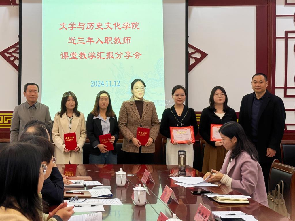 随后党月异教授宣读beat365在线唯一官网近三年入职教师本学期课堂教学督导评比中获奖名单:一等奖张倩萌、李莉,二等奖陈雪、周晓彤、王海霞。由文学院仲冲书记和黄传波副院长颁发荣誉证书。