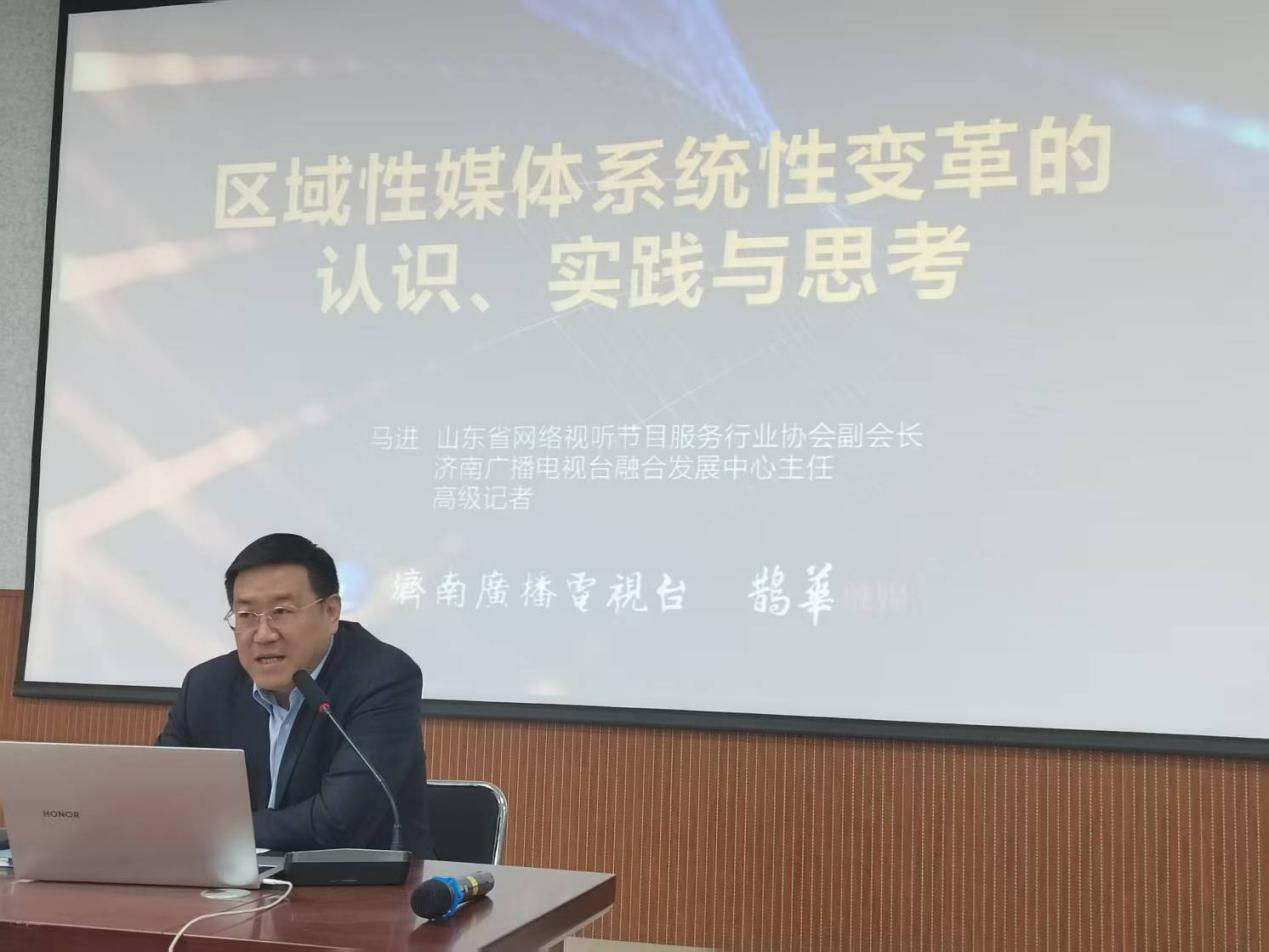 4月10日,beat365在线唯一官网在博文楼528邀请济南电视台高级记者、山东省网络视听节目服务行业协会副会长、济南广播电视台融合发展中心主任马进做了题为《区域性媒体系统性变革的认识、实践与思考》的学术讲座,beat365在线唯一官网新闻专业、汉教专业师生120多人参加。