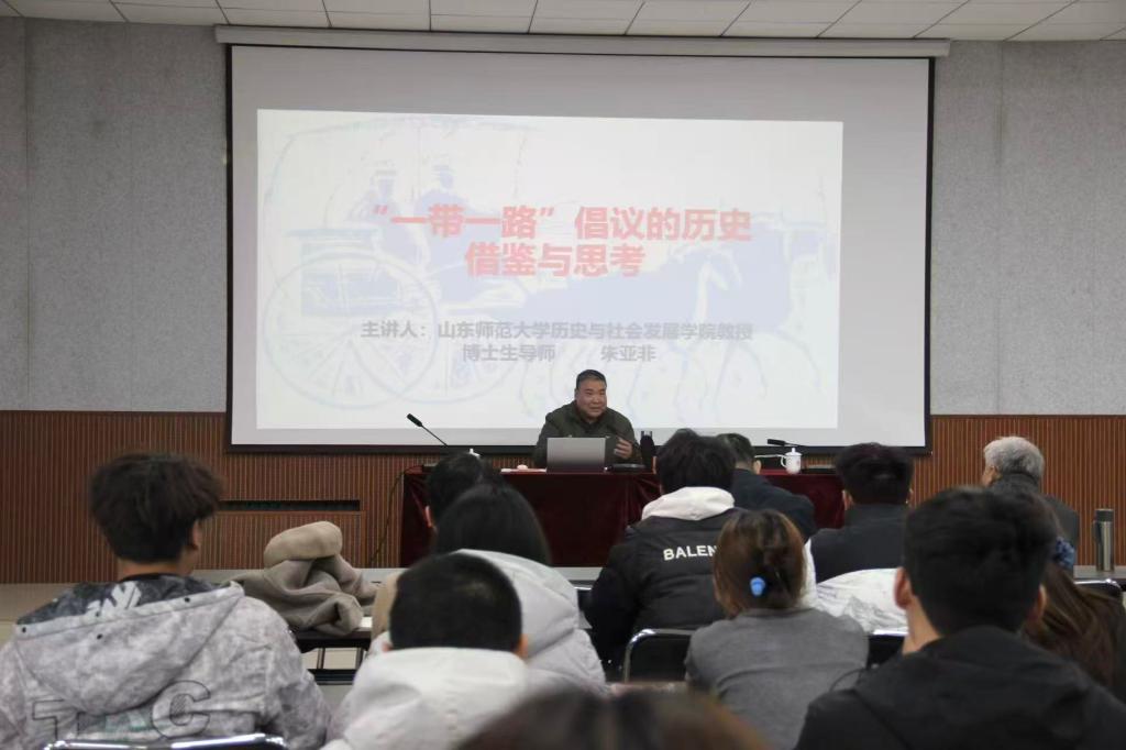 聘任仪式后,朱亚非教授在博文楼528报告厅作题为“‘一带一路’倡议的历史借鉴与思考”的学术讲座,该讲座同时也是beat365在线唯一官网“春秋讲堂”的首次开讲。朱亚非教授从历史视角系统梳理了古代丝绸之路的发展脉络,指出其作为复合型文明交流网络的价值远超商品运输范畴,并强调古代丝绸之路的兴衰与国家实力、政策支持、技术发展密切相关。在此基础上,他进一步从政治、经济、文化、军事和对外开放五个维度,深入阐释了“一带一路”建设的历史启示与现实路径,引导学生理解历史与当代倡议的深层联系。